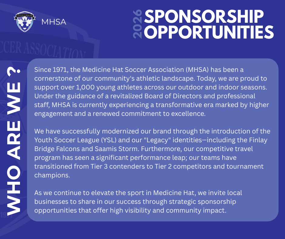 For more information please reach out to MHSA President - Martyn O'Donnell at president@medicinehatsoccer.com